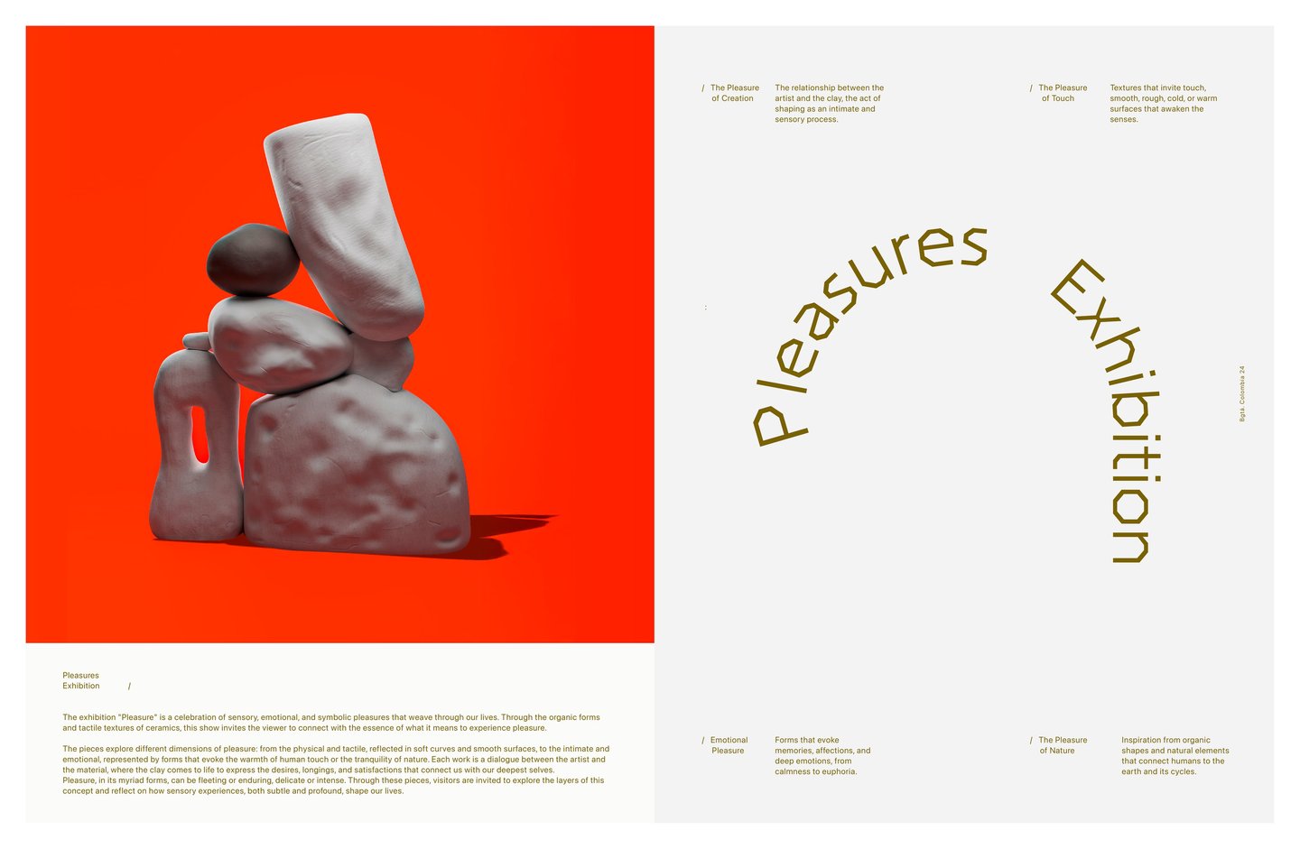 The exhibition "Pleasure" is a celebration of sensory, emotional, and symbolic pleasures that weave through our lives. Through the organic forms and tactile textures of ceramics, this show invites the viewer to connect with the essence of what it means to experience pleasure.