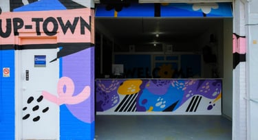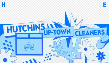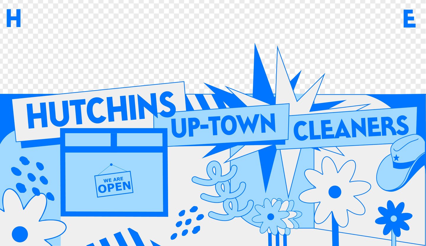 I developed the full visual identity for Hutchins Up-Town Cleaners, a laundromat located in Hutchins, Texas. This project included logo design, branding, and a custom mural that brings personality and energy to the space.